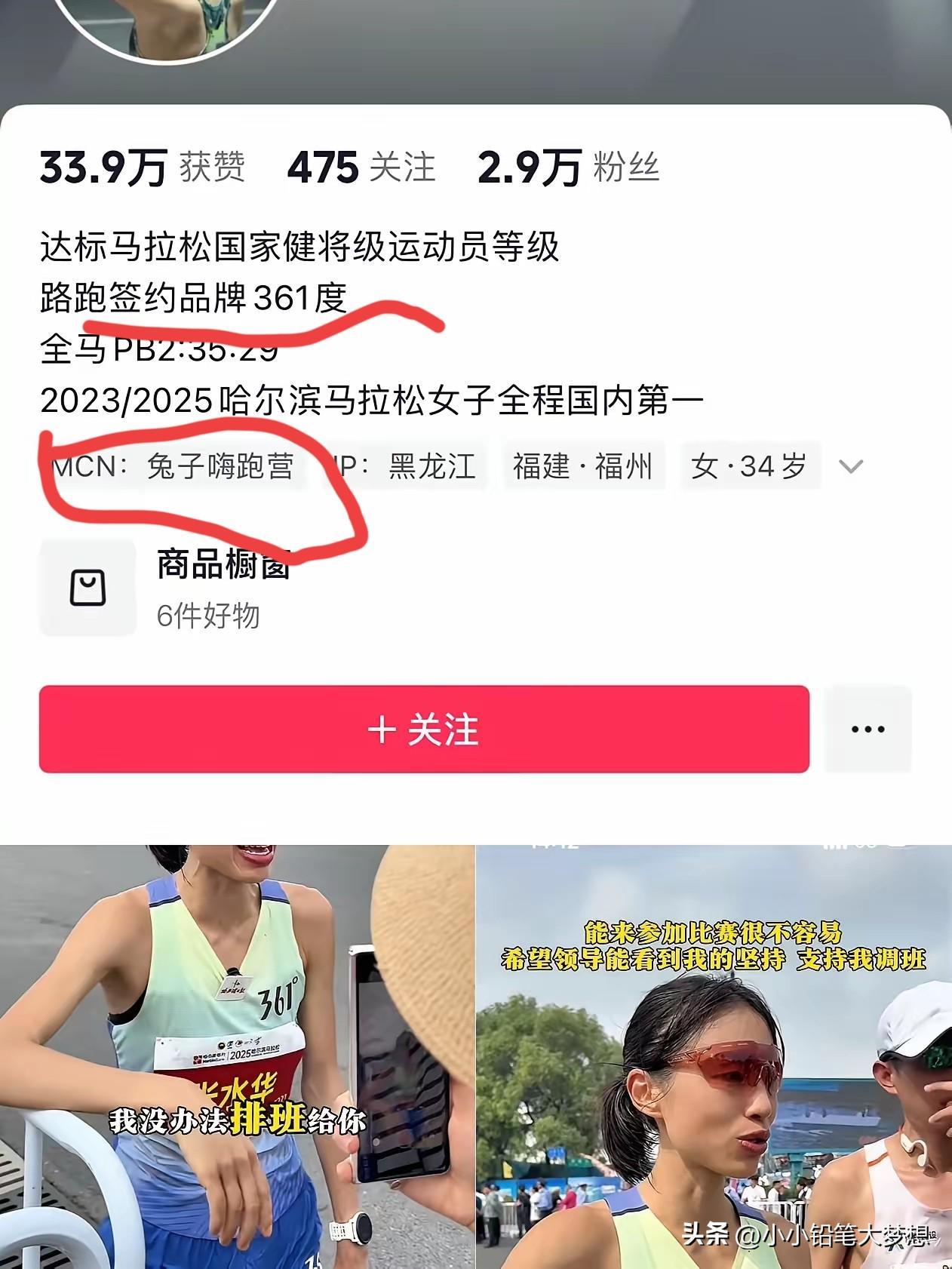 而从她的抖音个人账号里面看全国各地的马拉松比赛她都有安排,且几乎每个周末都在参赛,全国各地到处跑,意味着她要花大量的时间奔赴现场,其中最耗时间的还是平时要花大量的时间拉练。